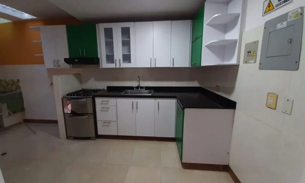 - Cocina abierta con mesones de granito pulido